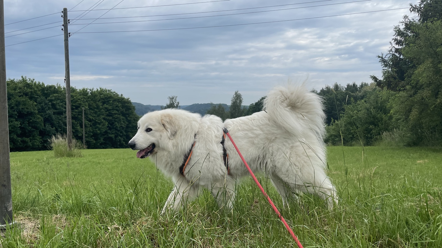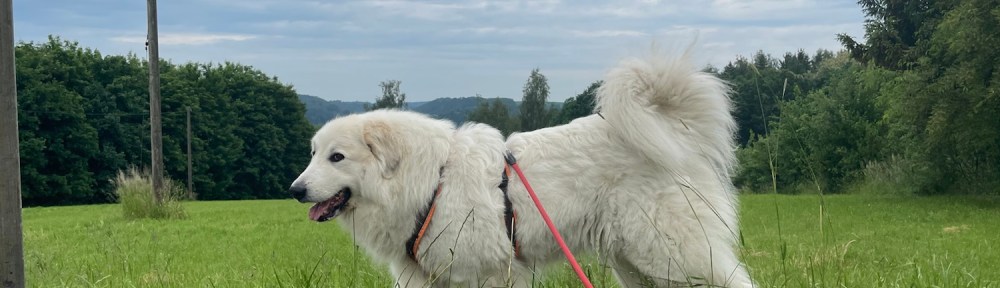 Mein großer Mensch hat auch gefrühstücksfuttert und dann sind wir gleich losgewandert. Heute schon ganz zeitig. Wir sind durch die Siedlung gelaufen. An der Baustelle lang und dann eine ganze Runde und wieder zurück. Das war nur eine kleine Runde aber eine schöne. Ganz gemütlich sind wir gewandert. Auf dem Heimweg sind wir noch durch mein Wohngebiet gelaufen.