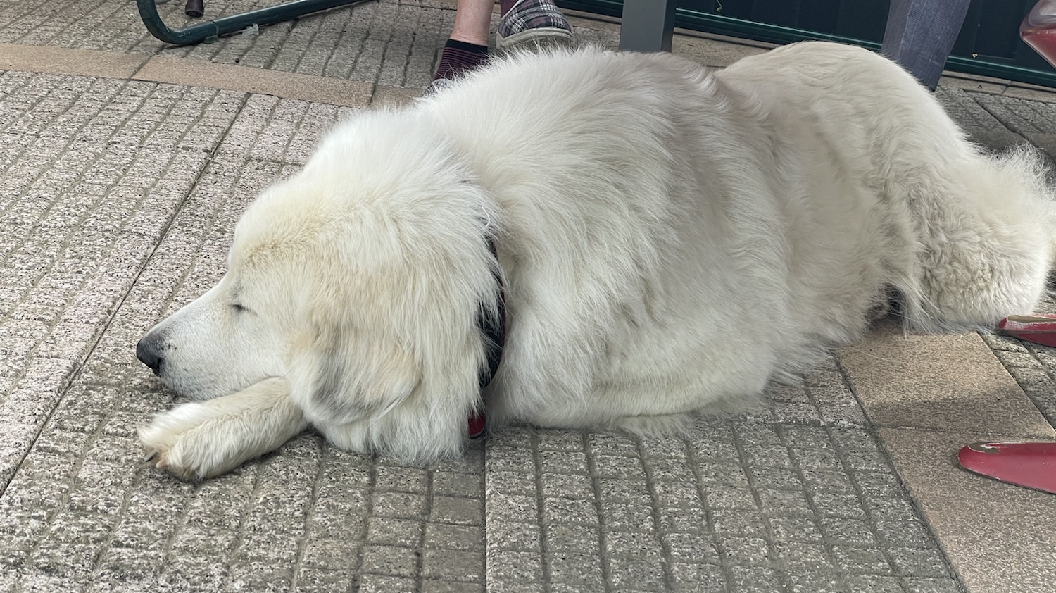 Immer noch ist Wochenende. Die Bella darf ausschlummern. Aber ich habe heute schon auf meinen großen Mensch und mein Frühstücksfutter gewartet. Dann haben wir zusammen mein Frühstücksfleisch gefrühstücksfuttert. Mein großer Mensch und ich, seine Bella. Ich bin eine Pyrenäenbergprinzessin. Eine ganz schöne. Wie meine Mami Ivy. Von der habe ich das. Schönsein.