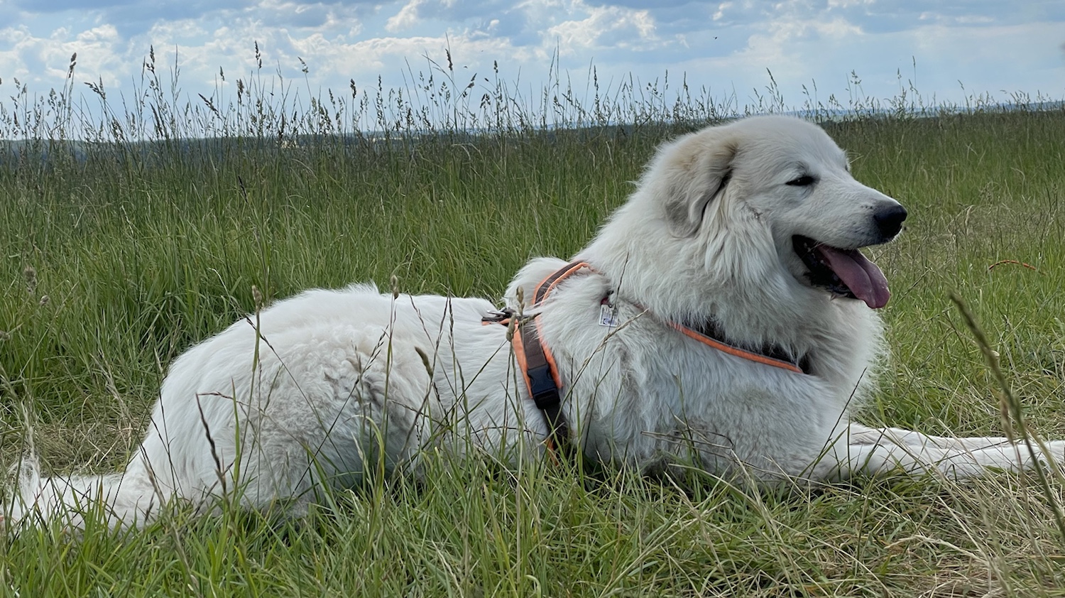 Dann sind wir eine Runde über die Wiese und das Feld gelaufen. Die Wiese hat gar kein hohes Gras mehr. Alkes platt. Aber das duftet ganz gut.