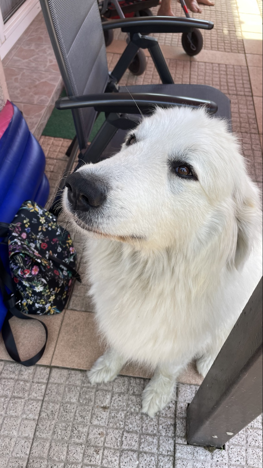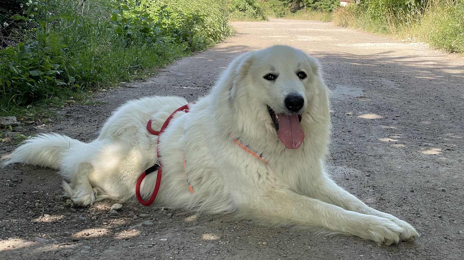 Nachmittags war Besuch da. Ich mußte erst wieder alle anschnuffeln. Dann durfte der ganze Besuch in meinen Garten. Wir waren alle zusammen auf meiner Terrasse. Und ich habe auv alle aufgepaßt. Das macht Spaß. Das ist meine Aufgabe. Auf alle aufpassen. Das kann ich. Ich bin eine Pyri. Eine Herdenschutzhündin!
