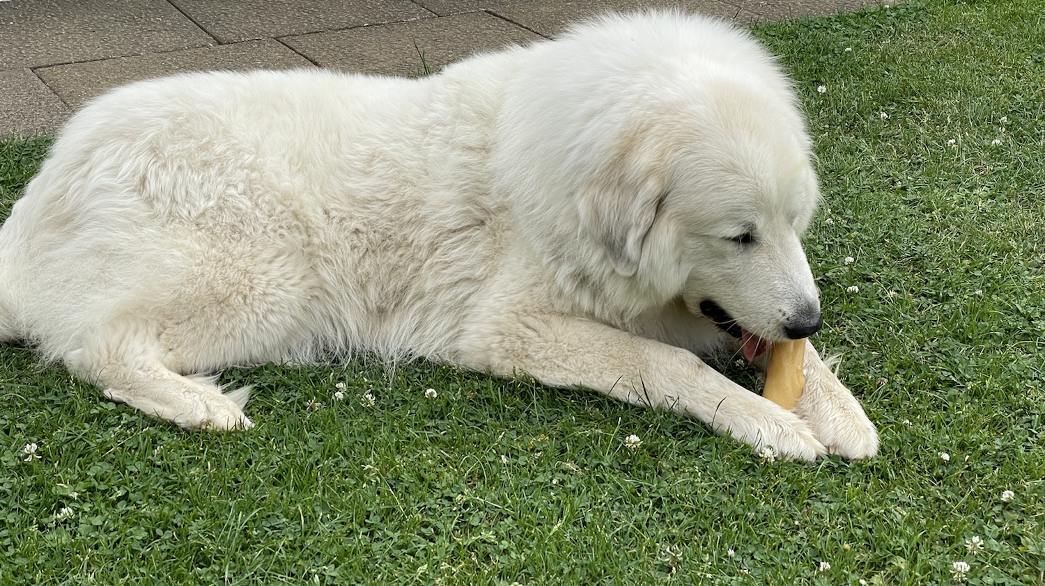 Es gab dann mein Abendfutter. Ganz lecker und ganz kühl. Extra für mich, weiiil, es war ja so sehr warm. Ich habe alles fein aufgeabendfuttert. Danach durfte ich wieder raus in meinen Garten.