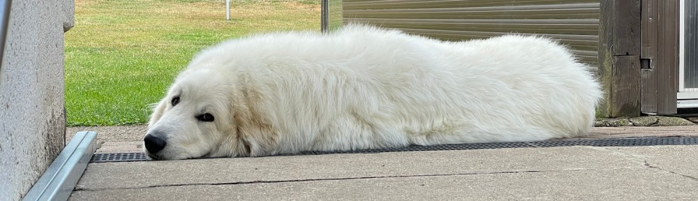 Heute war Matschepampewetter. Es hat immer mal geregenwettert. Aber ich bin ja eine schlaue Pyri. Ich suche mir trockene Plätze und in meine Kellerwohnung kann ich auch, wenn es zu schlimm wird. Und wenn ich naß werde, habe ich ja mein dickes Pyrifell. Da kann kein Regenwasser durch.