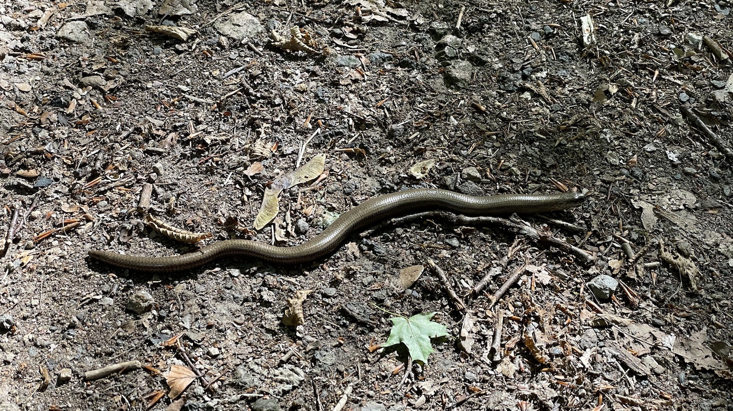 Heute bin ich da aber nicht draufgelatscht. Weiiil, wir haben die Schleichechse ja gesehen. Und sind um sie herum gelaufen. Dann sind wir ein großes Stück durch den Stadtpark gelaufen und haben eine kleine Pause gemacht, bevor wir wieder zurückgewandert sind. Die Blindschleiche war aber nicht mehr da.