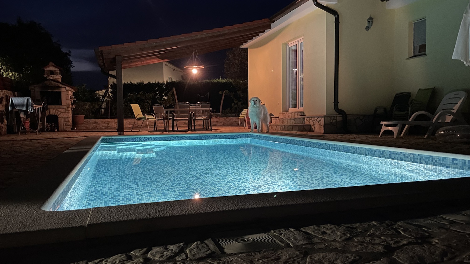 Zurück in unserer Ferienwohnung gibt es Abendessen. Dann machen wir es uns noch am Pool gemütlich, bevor wir sehr müde unseren Anreiseabend beenden.