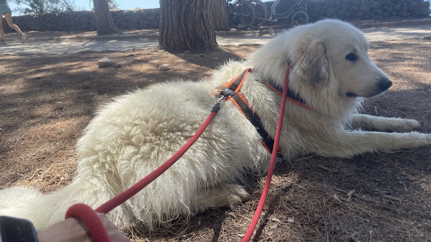 Nach dem Mittagsfuttern sind wir noch ein Stück weiter am Ozean gewandert. Bis wir zu einer anderen schönen Badestelle gekommen sind. Ich wollte aber nicht nochmal baden. Ich bin eine Berghündin und klettere lieber. Auch wenn ich gut schwimmeln kann. Aber das strengt so sehr an. Ich klettere lieber.