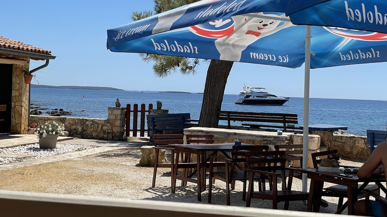 32° bis 35° C sind für heute gemeldet. Nach dem Frühstück entscheiden wir uns, heute nochmal in die Bucht Cuvi , südlich von Rovinj zu fahren und einen Strandtag einzulegen.