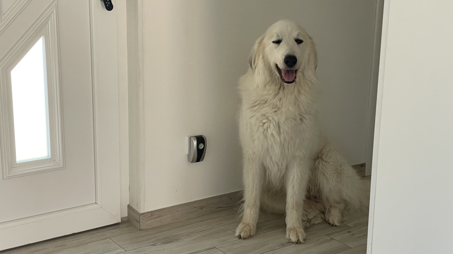 Nachdem meine Menschen gefrühstücksfuttert haben gehe ich mit meinem großen Mensch eine kleine Runde spazieren. Heute gehen wir wieder bei meiner kleinen Urlaubsfreundin vorbei. Die kommt auch gleich zu mir an den Zaun geflitzt und begrüßt mich.