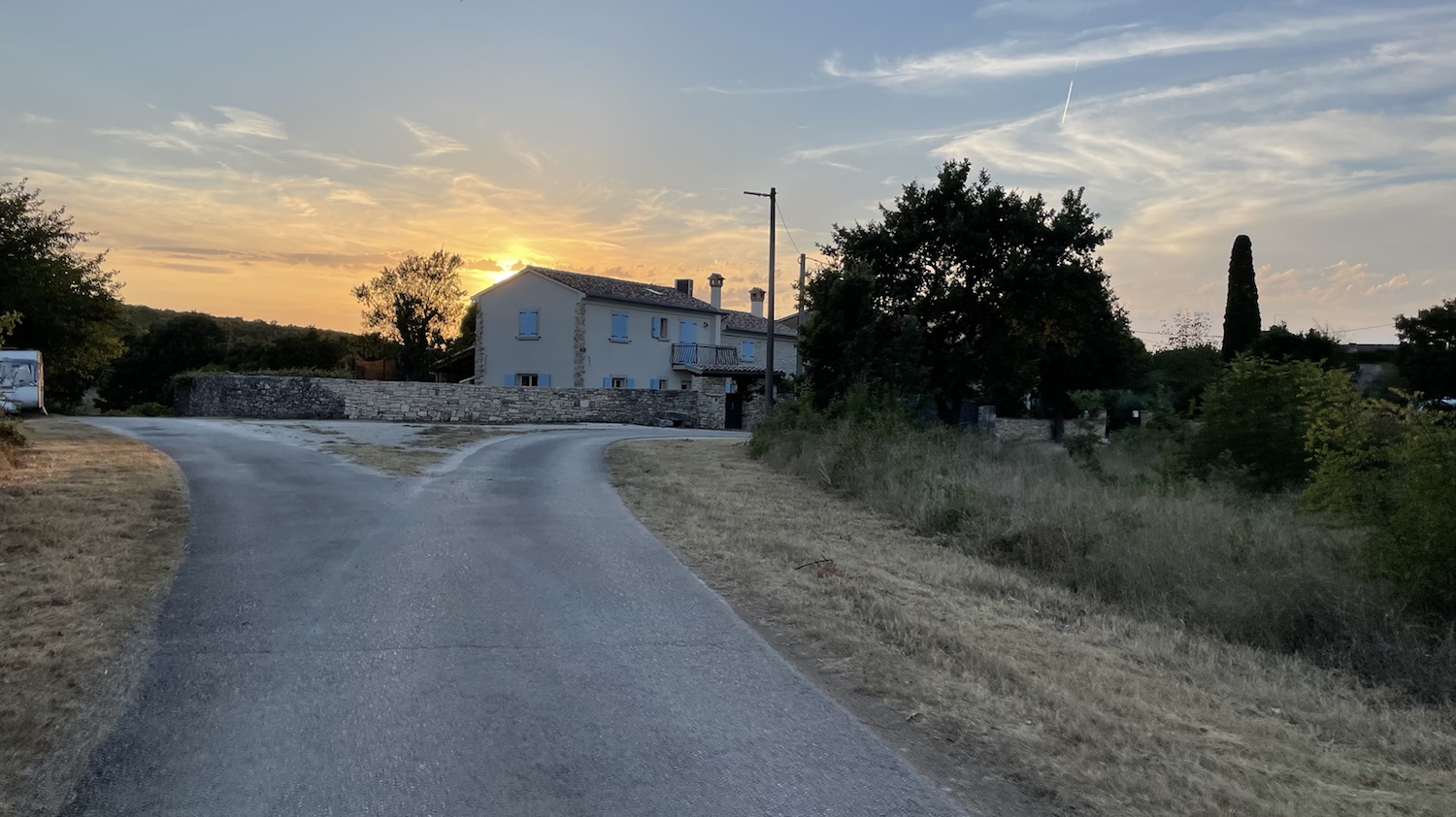 Dann setzen wir uns noch kurz auf die Terrasse. Bella will noch kuscheln und ein bißchen herumbalgen. Es sind immer noch 28° C. Die Sonne ist allerdings längst untergegangen. Und der immer präsente Wind macht es angenehm. Die Wespen, die den ganzen Tag am Pool sind, werden abends durch Mücken abgelöst. Die sind allerdings viel aufdringlicher. Deshalb gehen wir dann auch lieber rein.