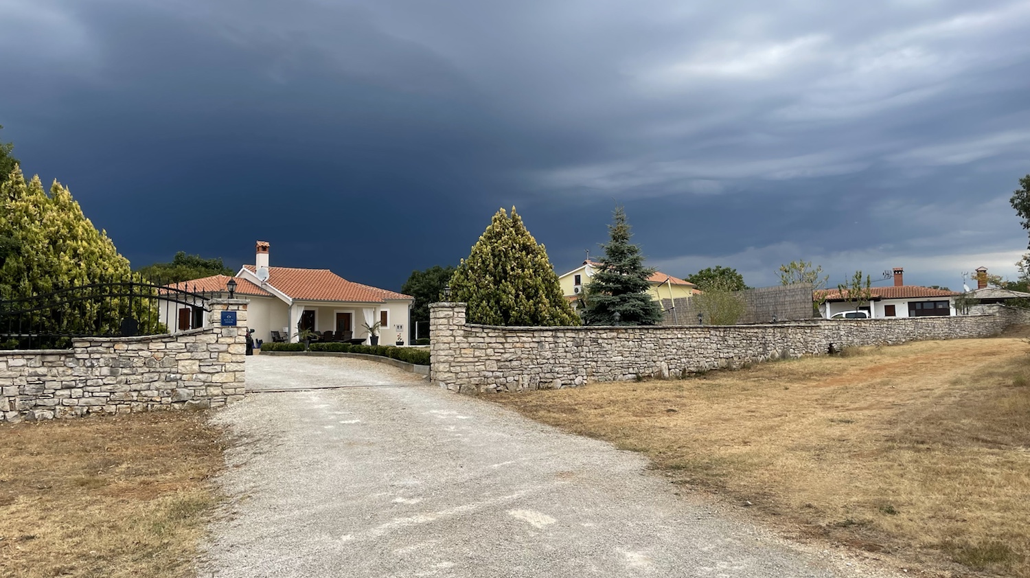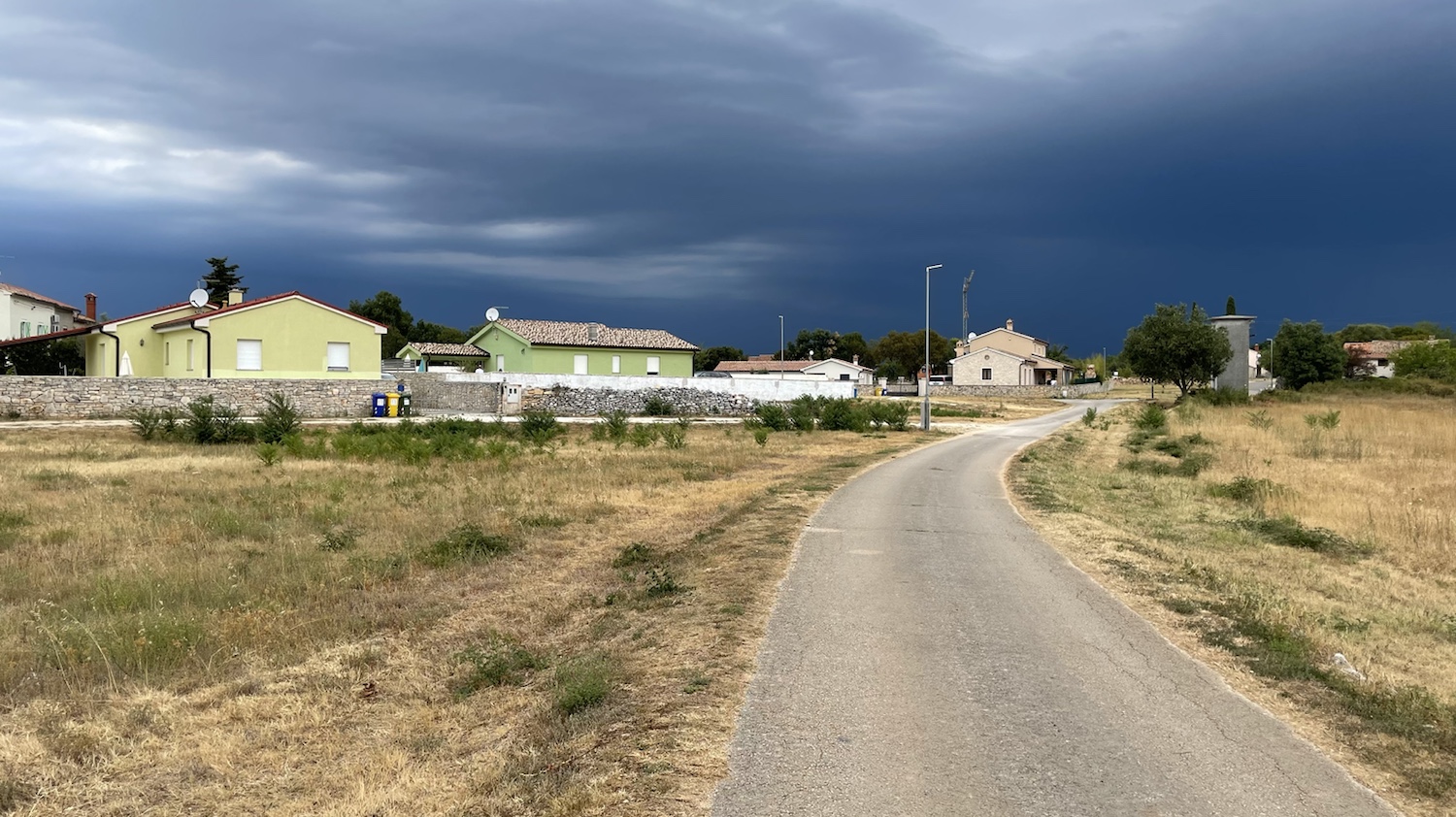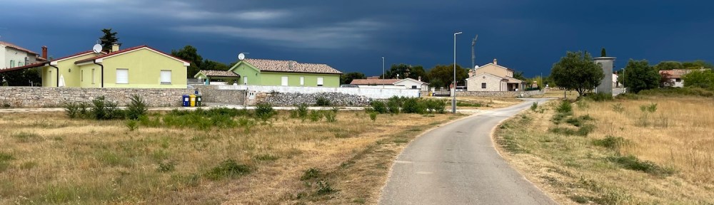 Mit Bella mache ich einen kleinen Morgenspaziergang, danach gibt es Frühstück. Im Anschluß machen wir einen Spaziergang durch unseren Urlaubsort Krmed. Wir werden dabei die ganze Zeit von dunkelm Gewitterhimmel in der Umgebung begleitet. So soll es auch bis mittags bleiben. Die Gewitter kommen nicht bis zu uns. Am Nachmittag ist dann wieder gewohnt schönes Wetter.