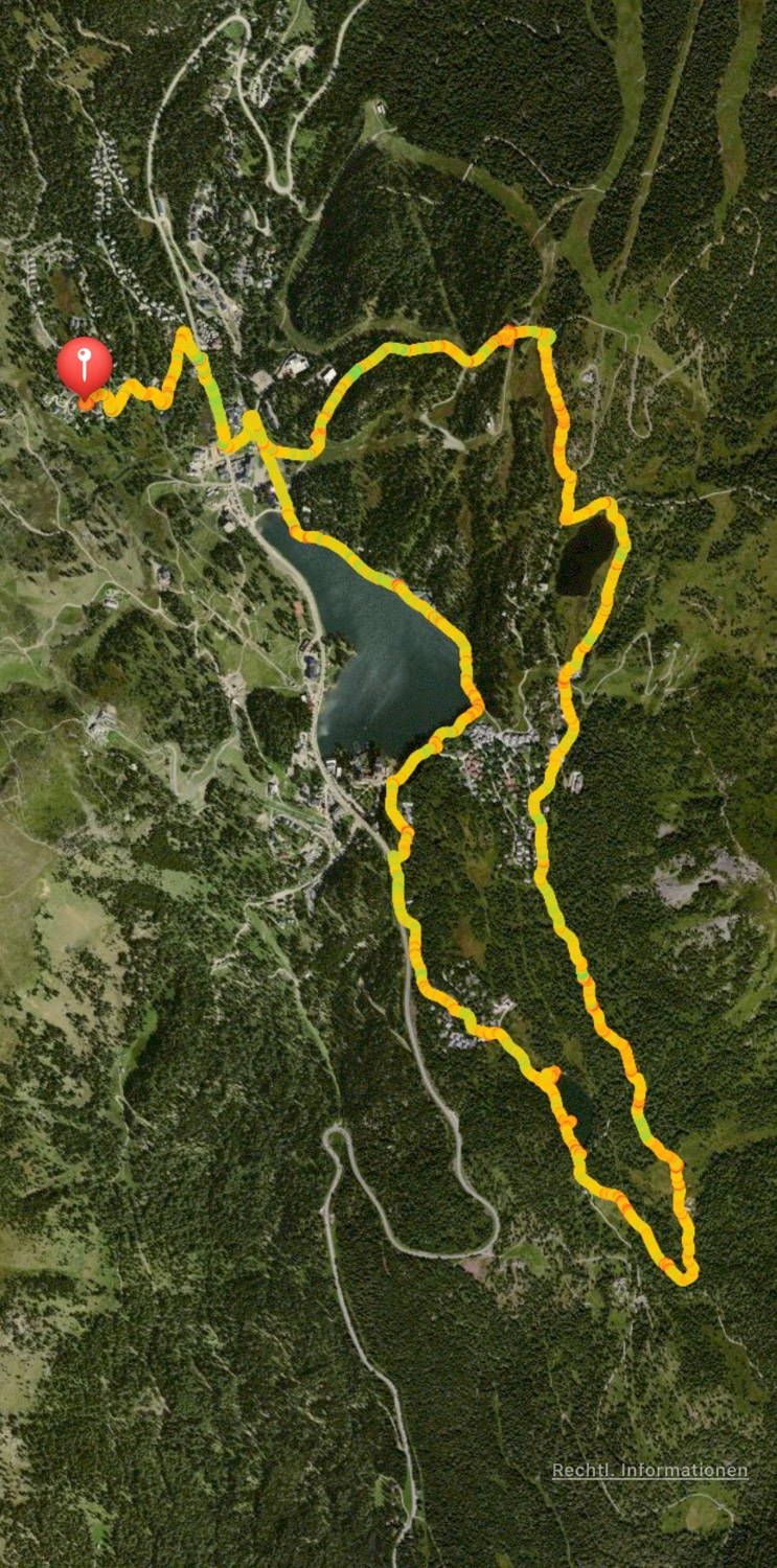 Nach dem Frühstück machen wir uns auf den Weg. Wir wollen heute die Drei-Seen-Wanderung machen. Pflichtprogramm auf der Turracher Höhe. Bisher sind wir die Runde immer im Uhrzeigersinn gelaufen. Heute geht es mal anders herum.