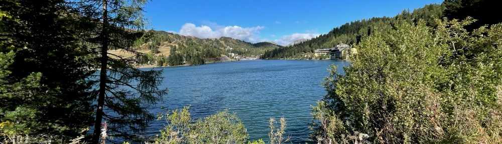 Zuerst steigen wir von unserem Berg herunter zum Turracher See. Die Straße meiden wir, laufen am Ufer beim „Jägerwirt“ Richtung Mei-Zeit-Siedlung. Hinter dem Hotel „Hochschober“ biegen wir zum „Mythos Edelstein Kranzelbinder“ ab. Auf dem Drei-Seen-Wanderweg geht es dann weiter zum Grünsee. Am Nordufer lassen wir Bella mal ins Wasser. Sie ist heute extrem angespannt, sehr unruhig.