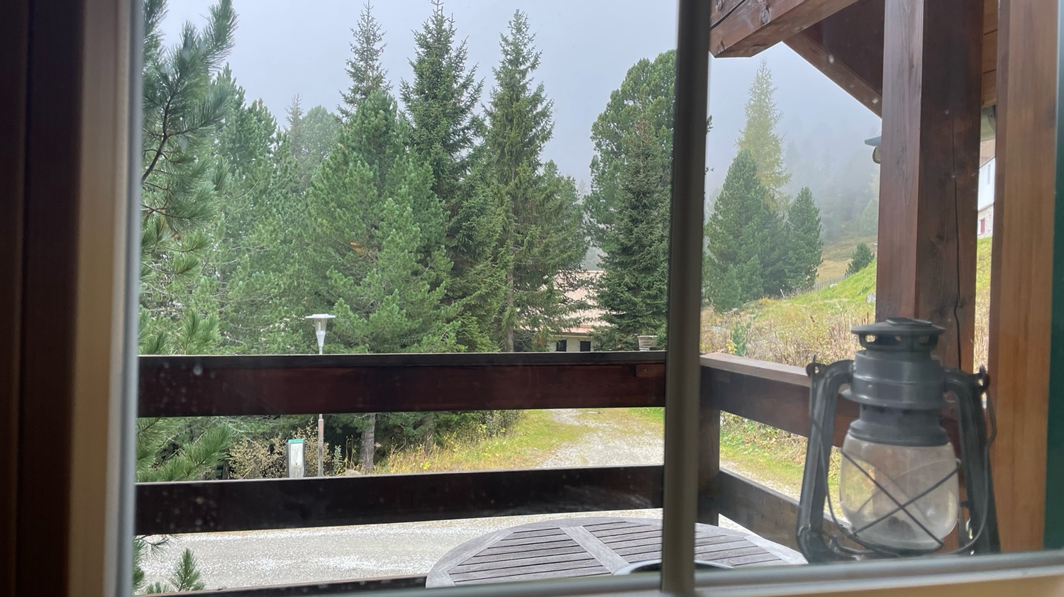 Nach reichlich eineinhalb Stunden sind wir wieder zurück im Ferienhaus. Inzwischen hat sich eine große graue Wolke über den Berg geschoben und sich auf unserer Höhe festgesetzt. So bleibt es auch für den Rest des Tages.