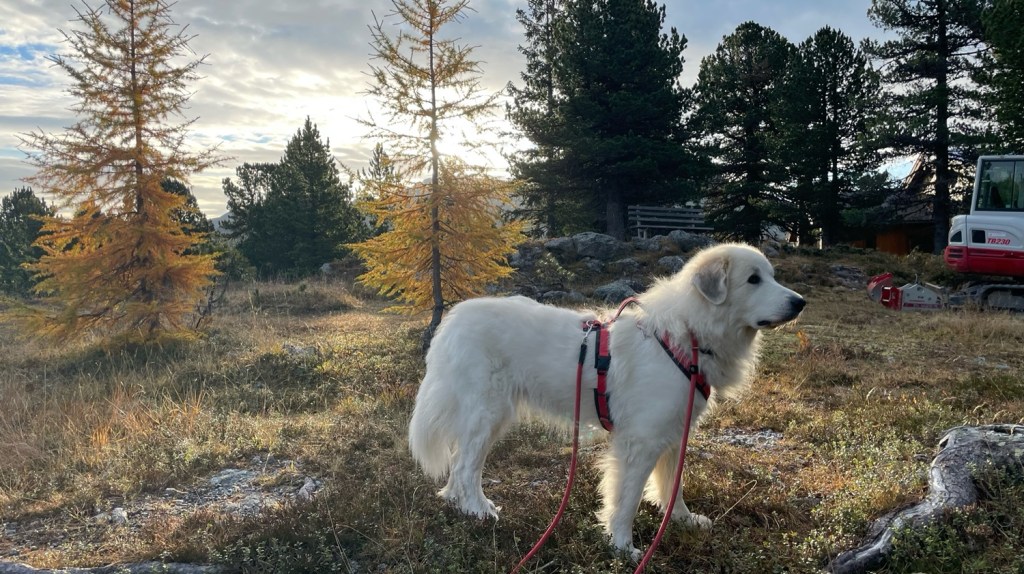 Heute hatten meine großen Menschen ganz viel zu tun. Weiiil, morgen ist mein Urlaub vorbei und ich fahre wieder nach Hause. Mit meinen Menschen. Und deshalb mußten die heute alles wieder einpacken. Ich bin aber erstmal morgenspazierengegangen. Mit meinem großen Mensch. Auf meiner kleinen Alpenwiese bin ich gewesen. Da habe ich alles nochmal beschnuffelt und in die Berge geguckt.