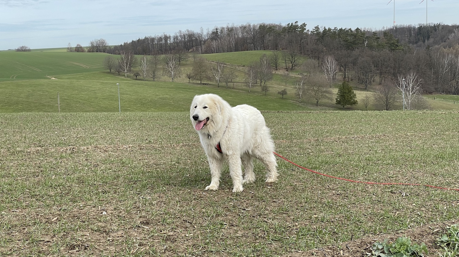 Aber seit vorgestern ist schönes Wetter. Frühlingswetter! Und da habe ich heute früh meinen großen Mensch mit auf einen Frühlingsspaziergang genommen. Die Bella ist hier nämlich die Chefin! Meistens. Und ich darf immer die Spaziergangrunden aussuchen. Auch meistens.