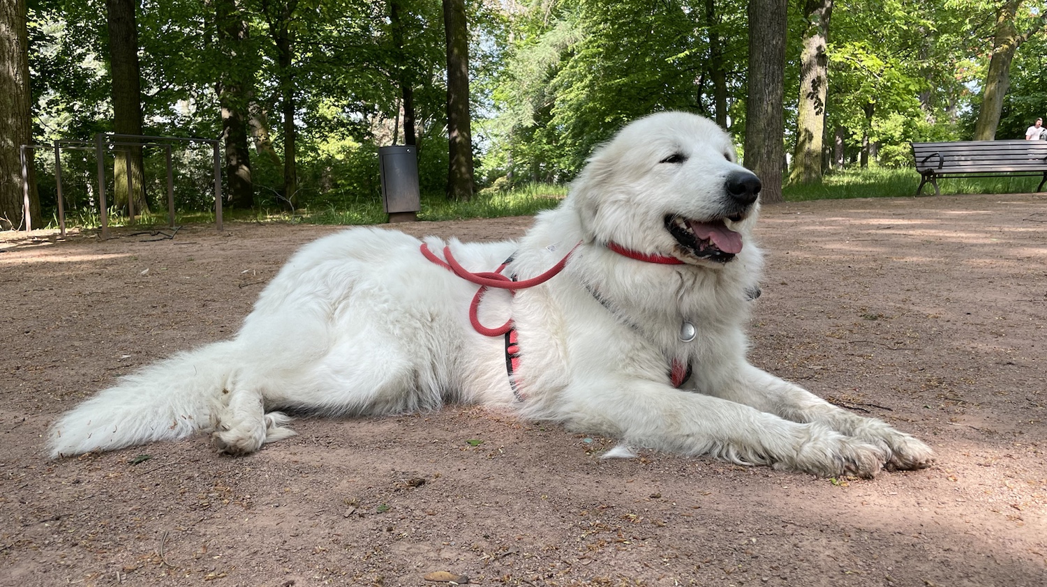 Am Mittwoch war wieder Hundeschule. Und da gab es einen dramatischen Zwischenfall. Mit Kampfhandlung! Wir haben wieder ganz schöne Übungen gemacht. Ich habe wieder mit Cody trainiert, dem Malli, dem schönen. Dann war Ablegen und Abrufen. Ich kann ganz fein alleine liegen. Der Cody ist noch ein bißchen aufgeregt und muß beim Ablegen gesichert werden, weiiil, der will immer aufspringen. Mein großer Mensch hat den Cody abgesichert, damit sein großer Mensch ihn abrufen kann. Und weil der Cody so schön dagelegen hat, habe ich mir gedacht, den gucke ich mir mal genauer an. Und da bin ich aufgestanden und zum Cody und habe ihn angeschnuffelt. Und das hat meinem großen Mensch gar nicht gefallen und der wollte mich zurück auf meinen Platz schicken. Der Cody mochte das Schnuffeln auch nicht und ist in dem Moment hochgesprungen und auf mich los. Mein großer Mensch ist gleich über den Cody drübergefallen und ich habe dem Cody erklärt, daß man eine Herdenschutzhündin nicht einfach mal so anschimpft. Da gibt’s nämlich Ärger. Aber ordentlich. Die Menschen haben uns aber gleich wieder auseinandergezerrt. Ist auch gar nichts passiert. Nur mein großer Mensch ist auf sein Knie geknallt. Das ist jetzt Sondermüll. Ganz voll Blut waren der Cody und ich, weiiil, irgendwie habe ich mir auf die Wange oder die Zunge oder so gebissen und das hat ein bißchen geblutet. Ich war aber gleich mit meinem großen Mensch am Teich ein bißchen Wasser trinken und da war gleich alles wieder weg. Dann haben wir ganz schön weitertrainiert. Der Cody ist trotzdem mein Freund und nächste Woche will ich wieder mit ihm trainieren.
