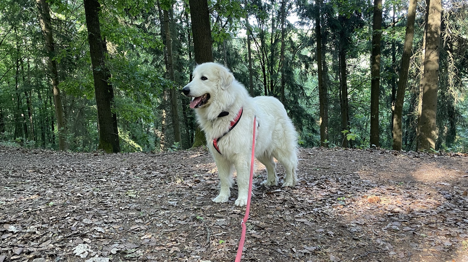 Nachmittags sind wir in unserem Garten gewesen und ich habe mich von meinem großen Spaziergang ausgeruht. Und zum Abendspaziergang sind wir mit meinem weißen französianischen Auto weggefahren. Zur Schwester von meinem großen Mensch. Da waren wir kurz im Garten, ich habe alles angeschnuffelt und dann bin ich mit meinem großen Mensch eine schöne Abendrunde durch den Wald spaziert.