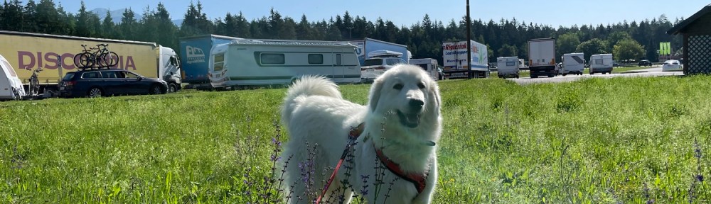 Auch auf den österreichischen Autobahnen haben wir, bei etwas zunehmendem Verkehr freie Fahrt bis zum Karawankentunnel. Auf slowenischer Seite kommen wir zunächst auch gut voran. Bei Jesenice dann der erste kurze Stau, der uns aber nur wenige Minuten kostet. An der Autobahnraststätte Voklo – zufällig der selben wie letztes Jahr – machen wir einen erneuten Tankstopp, Bella kann nochmal über die große Wiese schnuffeln, wie mehrere andere Hunde mit ihr auch.