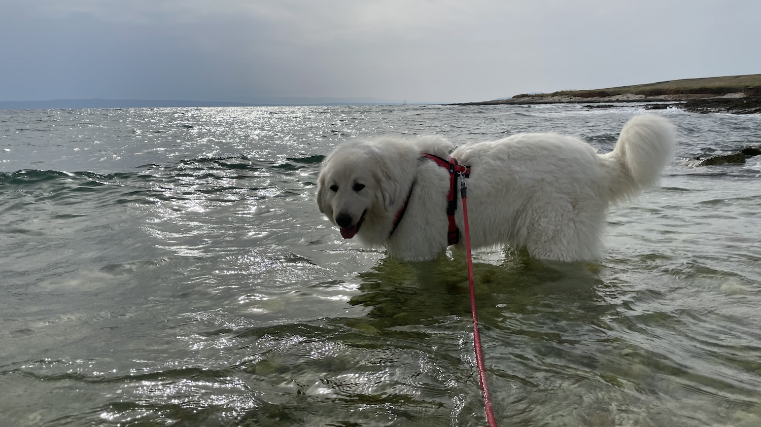 Meine Menschen sind dann im riesigen Ozean rumgeschwommen. Ich wollte nicht nochmal rein. Ich habe lieber von draußen geguckt. Das Wasser war wieder ganz zappelig. Das mag ich nicht.