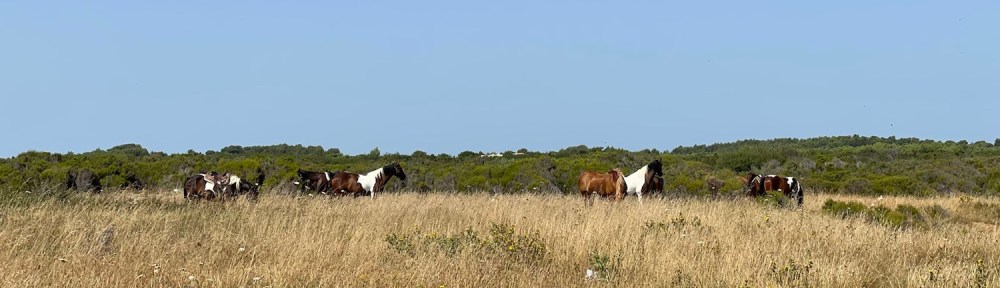 Bis zur Bucht, in der die Pferde baden werden brauchen wir mit dem Auto ca. 15 Minuten. Wir stellen uns auf einen kleinen Parkplatz von dem aus wir ca. 10 Minuten gemütlich bis an den Kies-Strand immer am Wasser entlang laufen. Dann haben wir noch genügend Zeit zu baden.