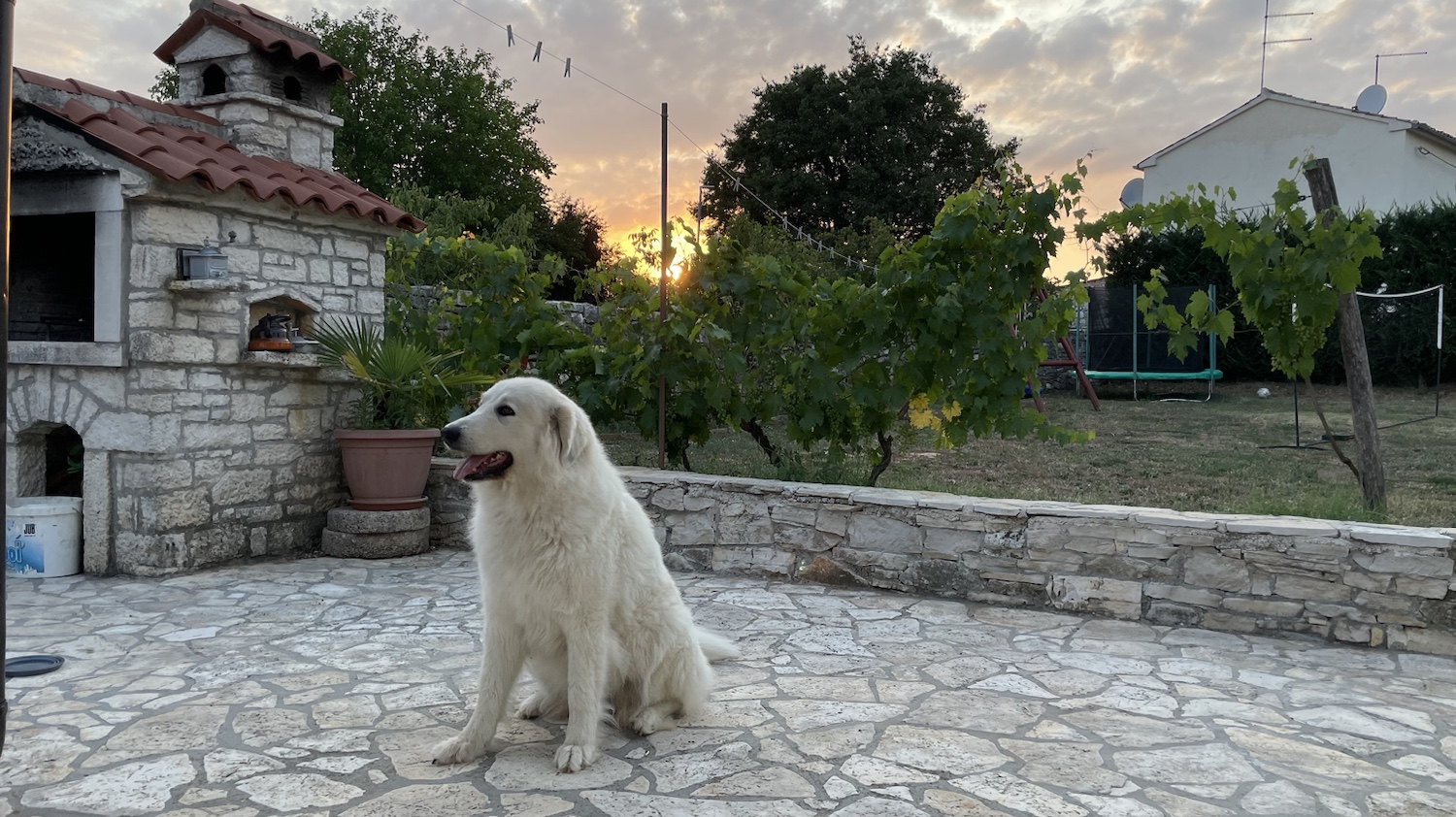 Zwischendurch nochmal im Pool baden, später dann Kaffee mit dem leckeren Kuchen von Irena. Und der Grill wird für den Abend vorbereitet. Bella ist da immer besonders brav, wenn sie merkt, es gibt da bald was.