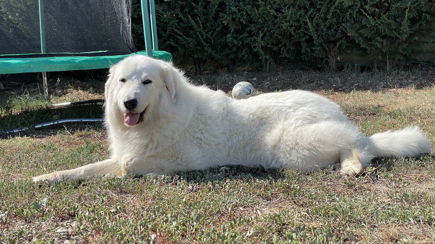 Ich habe dann immer mal gewechselt. Meistens bin ich im gekühlten Wohnzimmer geblieben. Und manchmal war ich draußen. In der Sonne. Da ist es ganz kuschelig warm. Da lege ich mich dann in die Sonne. Auf die Wiese. Und dann bin ich wieder voll dieser Stachelkletten. Die bürstet mein großer Mensch dann aus meinem Pyrifell raus.