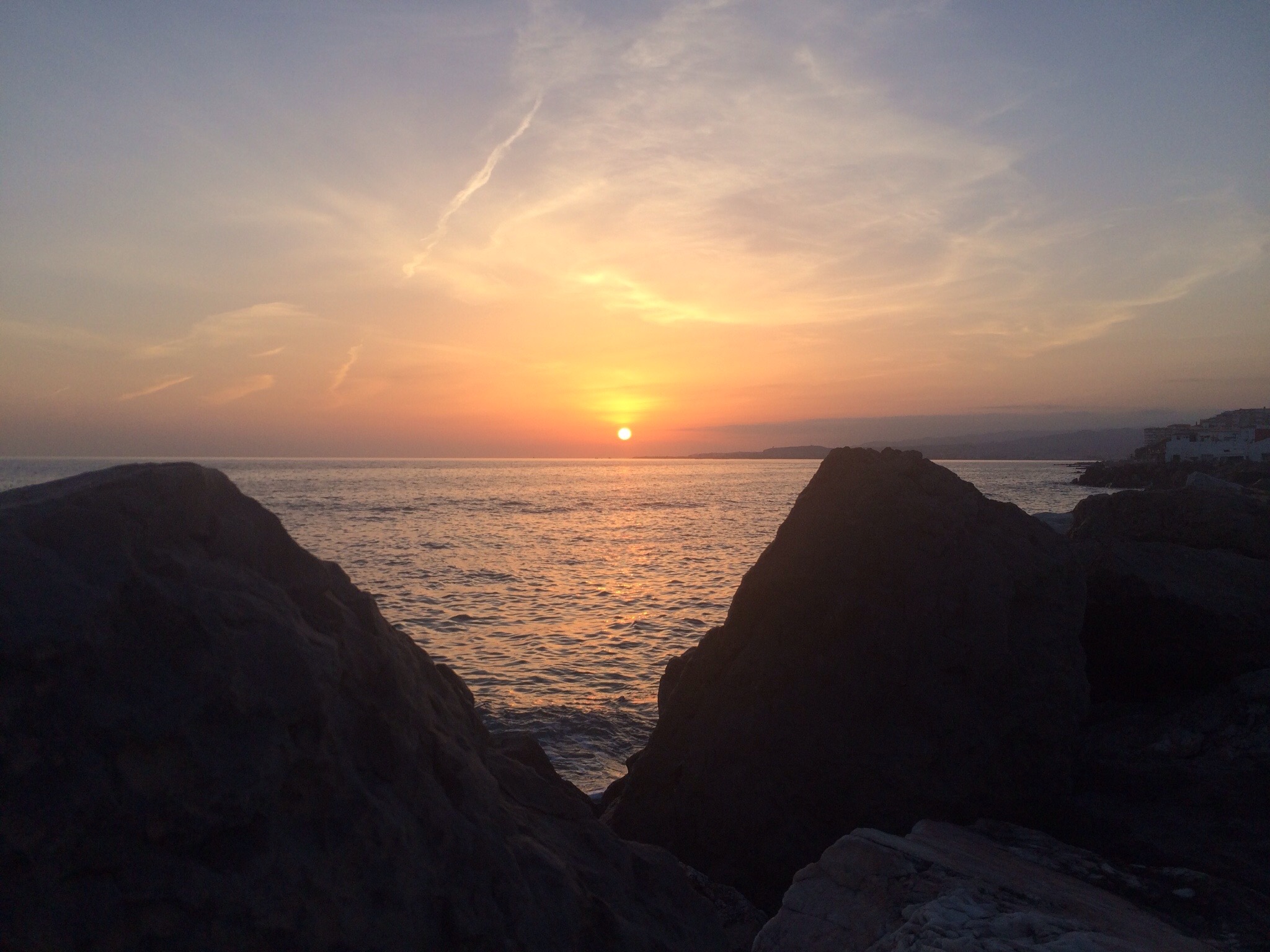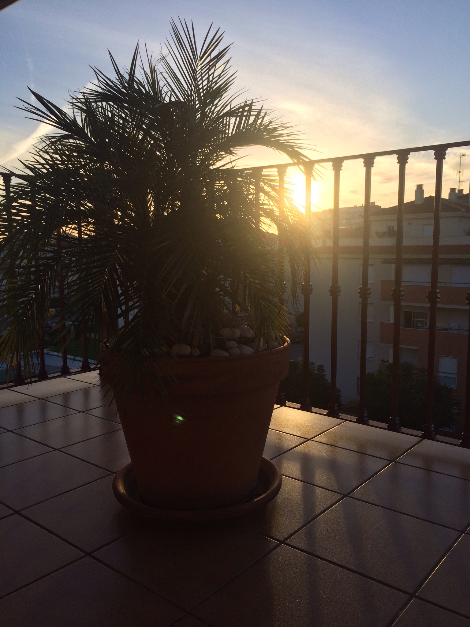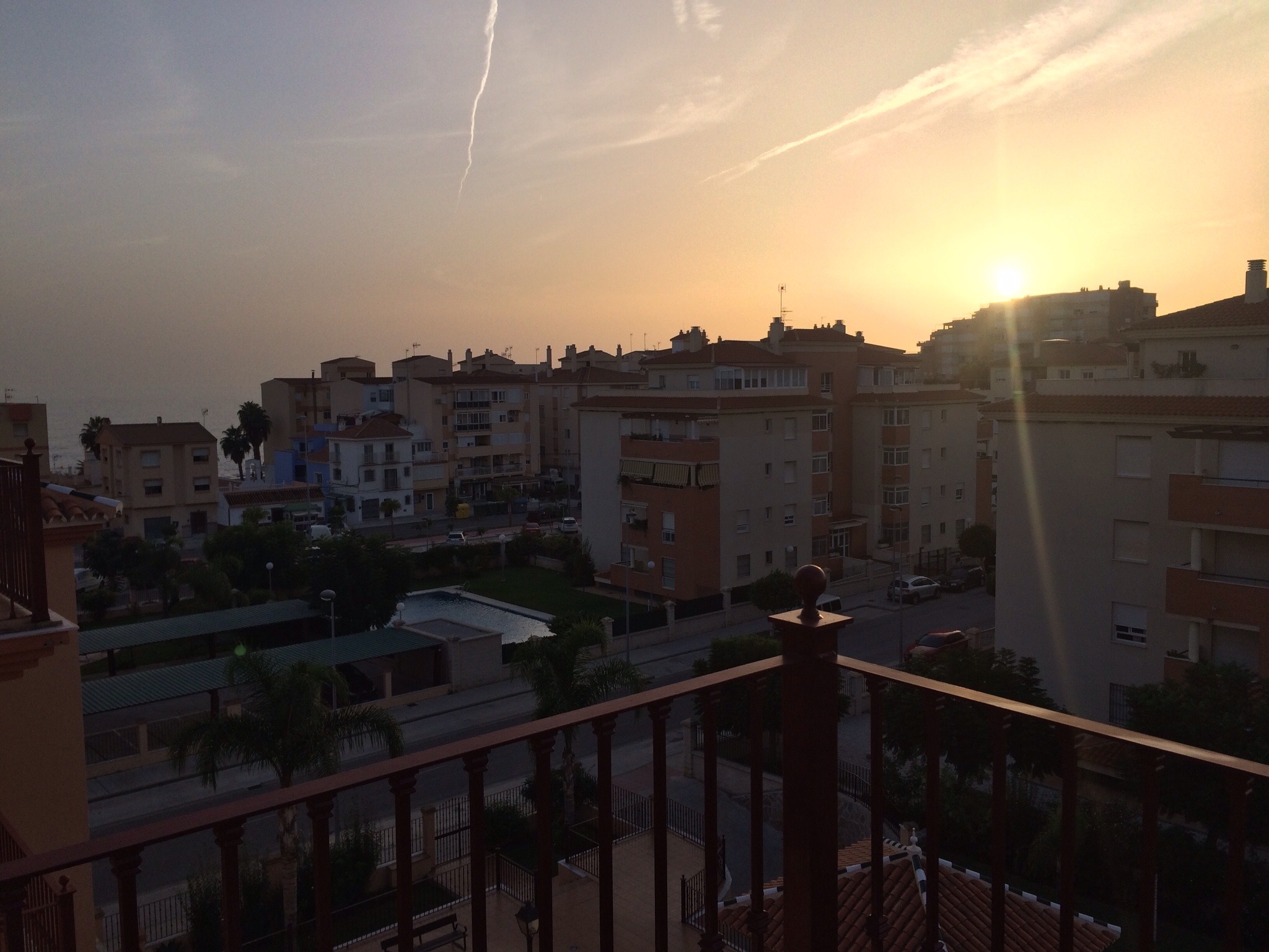 Auf der Rückfahrt nach Mezquitilla schnell noch ein paar Sachen fürs Wochenende gekauft und als wir dann am Abend bei Käse, Baguette, spanischen Oliven und Rotwein saßen ging in Malága gerade die Sonne unter:
