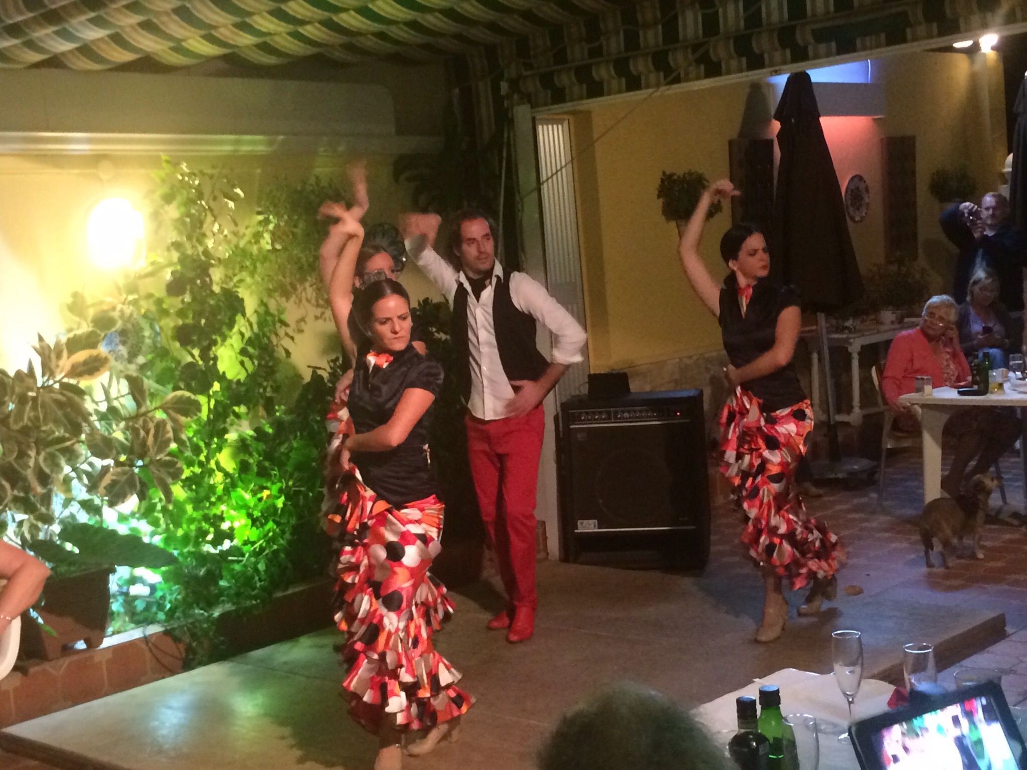 Zurück in unserem Urlaubsort Mezquitilla haben wir uns dann entschlossen, wieder im La Viuda zu Abend zu essen. Allerdings waren da bei unserem Eintreffen alle Tische reserviert. Der Grund: Noche de Flamenco – Nacht des Flamenco. Da war die Hütte quasi voll! Einen Tisch haben wir dann doch noch bekommen und konnten so, völlig ungeplant, bei leckerer Paella und einer Flasche Rioja-Wein die andalusischen Tanze bewundern.