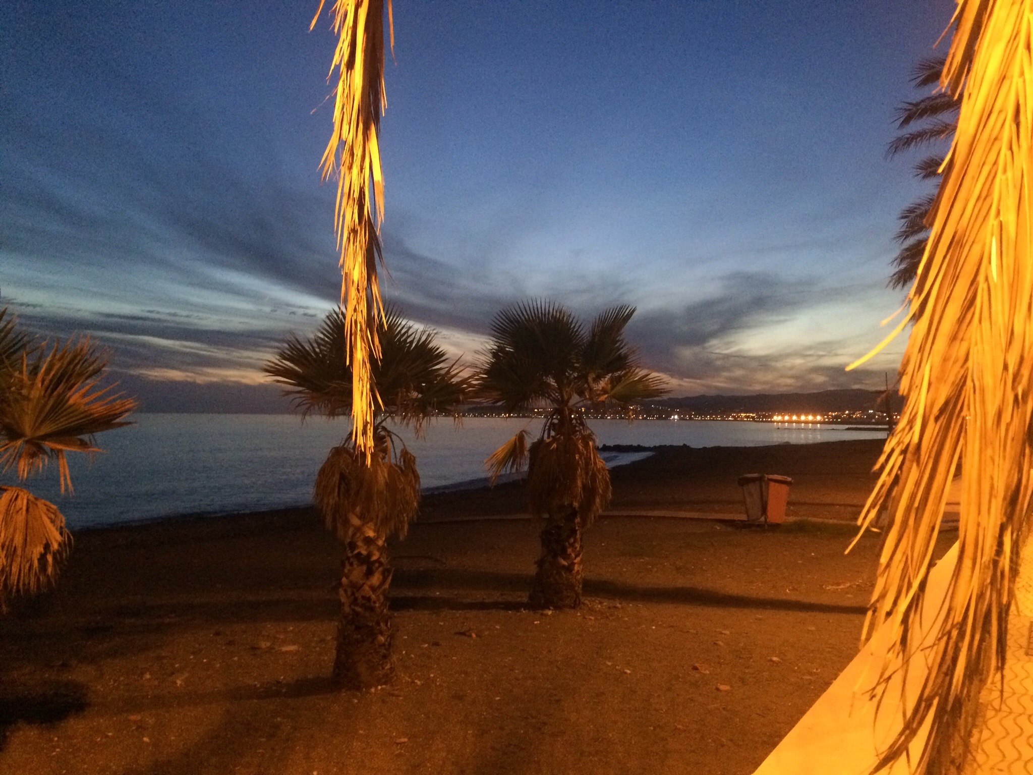 Und bei unserem letzten Abendspaziergang an der Strandpromenade ins „Pippo“ war die Sonne in Malága längst untergegangen: