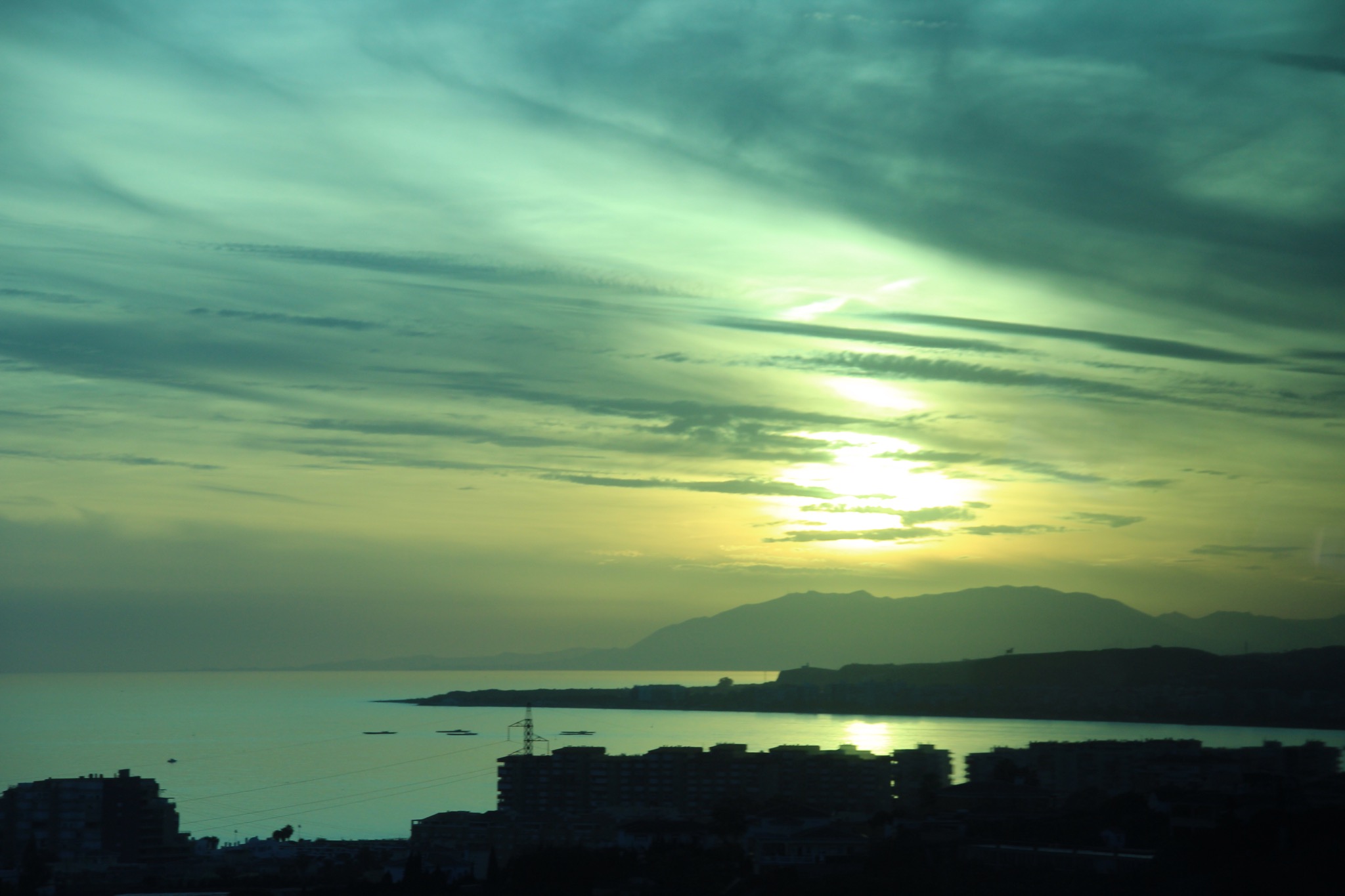 Und hier konnten wir gerade noch sehen, wie in Malága die Sonne unterging: