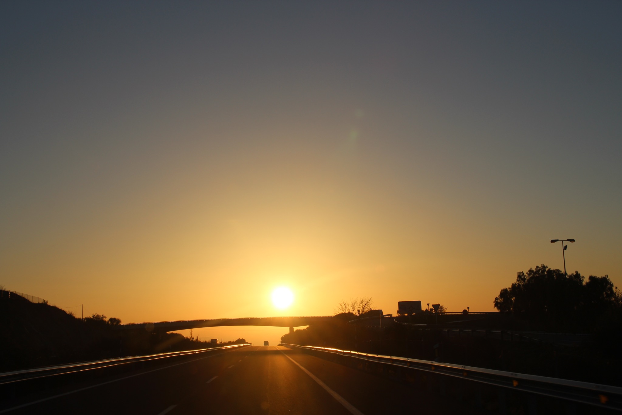 Freitag früh ging es – der aufmerksame Leser wird es bereits ahnen – pünktlich 4 Uhr los auf die ersten knapp 1.000 km unserer dreitägigen Heimreise. Zum letzten Mal entlang der Küste zunächst Richtung Motril, vorbei an Torrox, Nerja, der wunderschönen Bucht von La Herradura, Almuñécar und Salobreña, dann nach Norden Richtung Granada, weiter nach Lorca – hier mit wundervollem Sonnenaufgang – und Murcia.