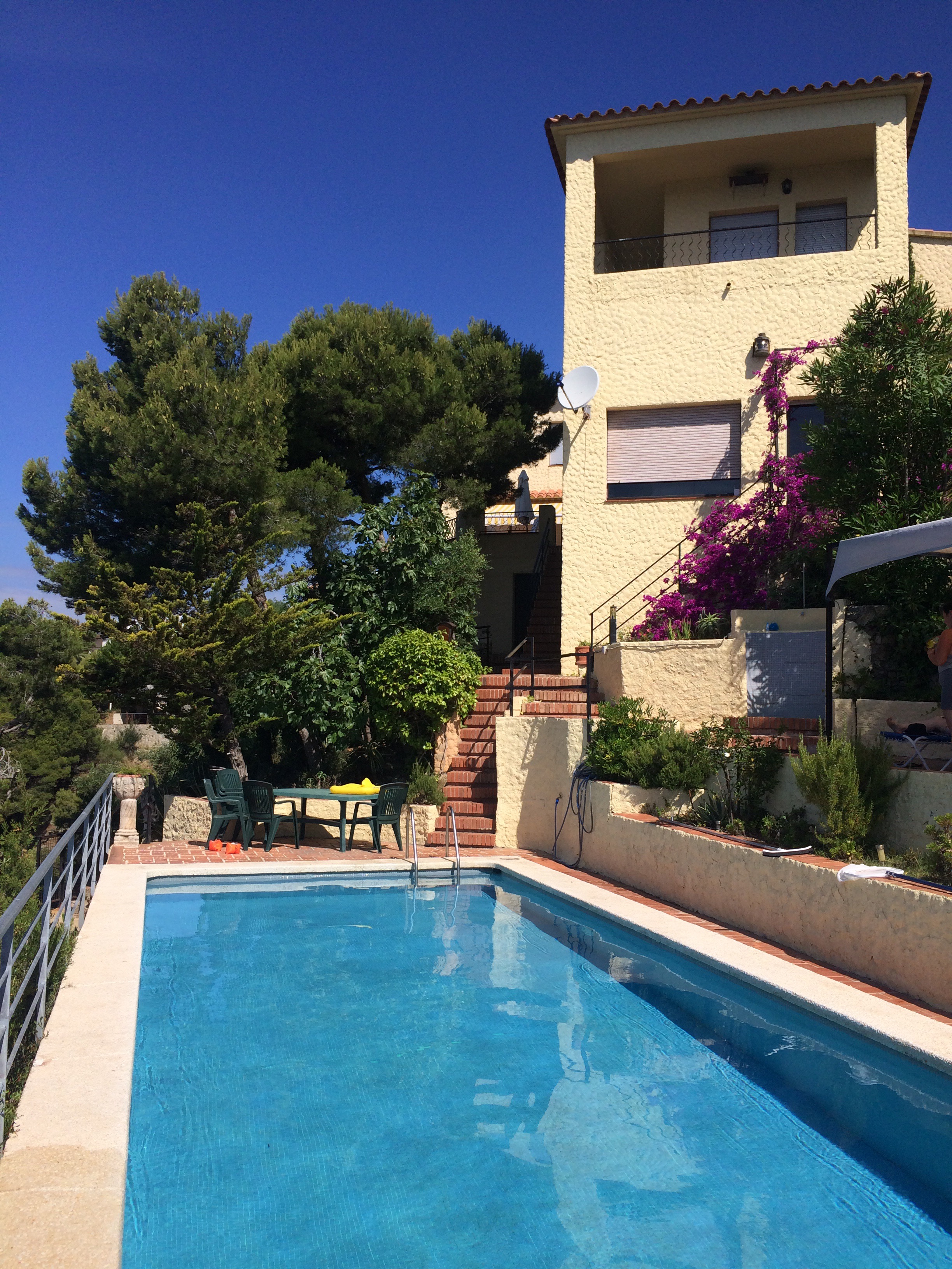 Zurück im Ferienhaus geht es am Abend noch in den Pool. Nach dem Abendessen (heute gibt es Spaghetti) sitzen wir bei spanischem Rioja noch auf der Terrasse und genießen den Sonnenuntergang.