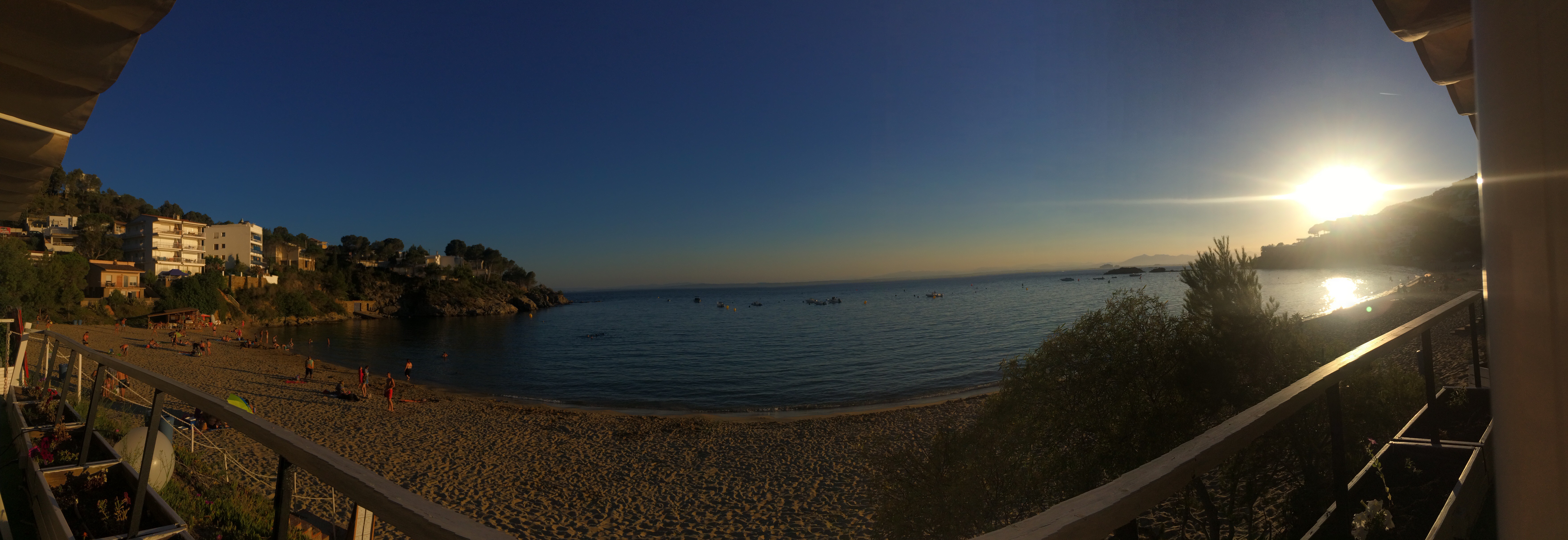 Zurück im Ferienhaus geht’s nochmal in den Pool. Zum Abendessen verdrücken wir auf der Terrasse die letzten Spaghetti. Anschließend dann doch noch mal an den Canyelles Grosses de L’Almadrava, ein (vorerst) letztes Schwimmen im Mittelmeer.